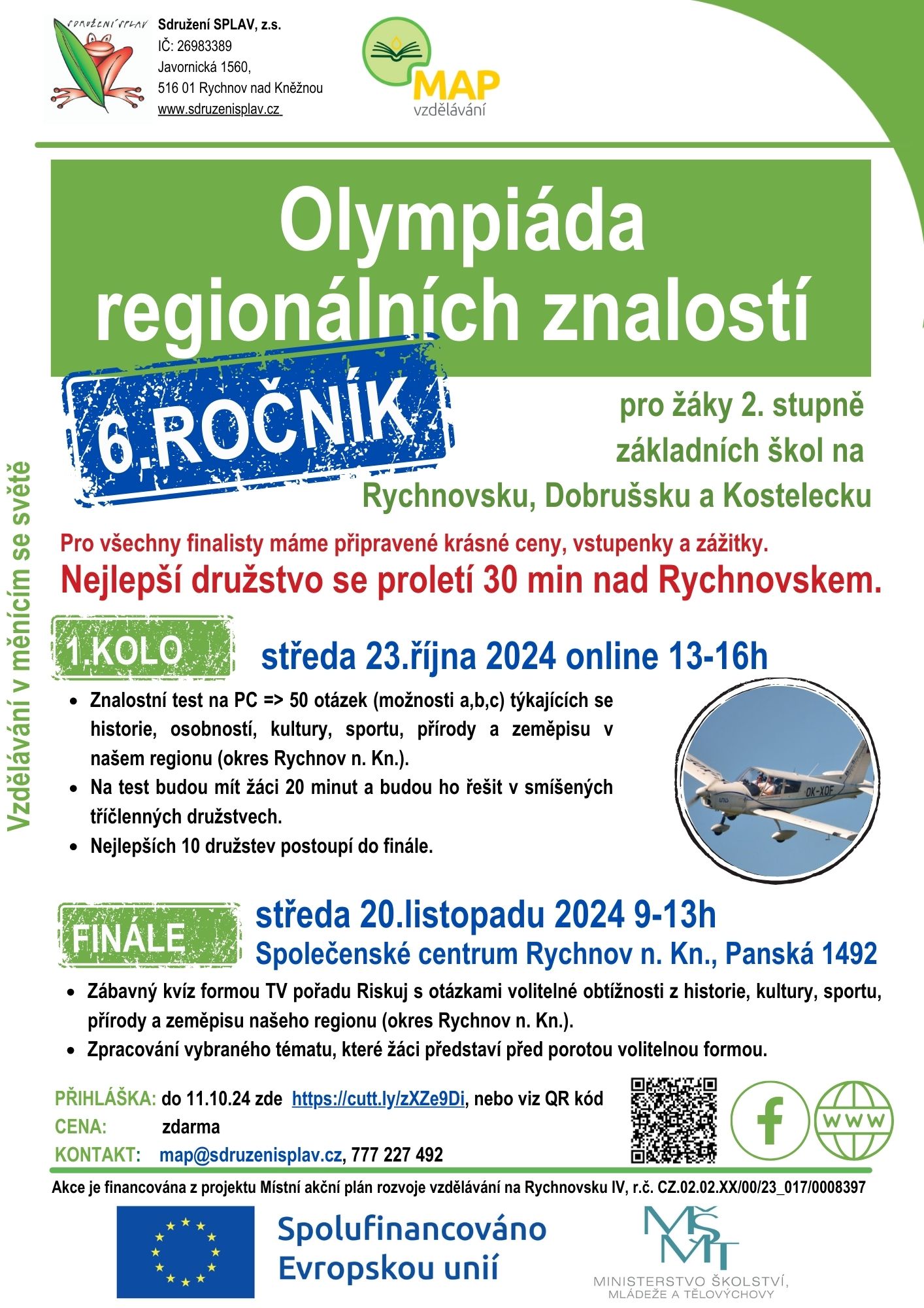 - let letadlem nad Rychnovskem v délce 30 min od Sdružení SPLAV, z.s.