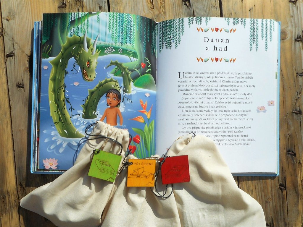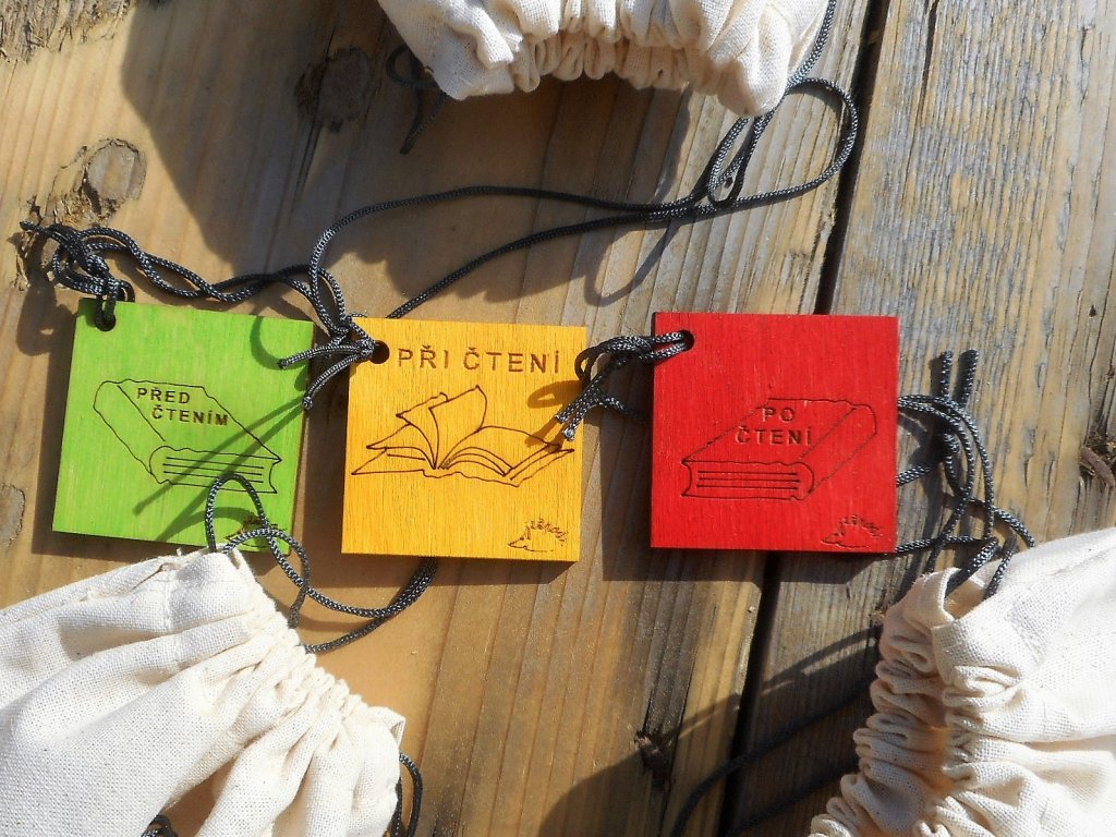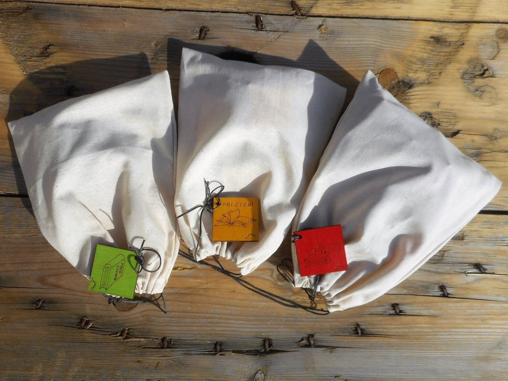 (před čtením) – uvědomění (při čtení) – reflexe (po čtení). - Sada obsahuje 3 plátěné sáčky PŘED ČTENÍM (zelená